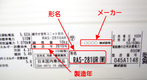 事前にご使用中エアコンの【型番】【メーカー】【製造年】をご確認ください。